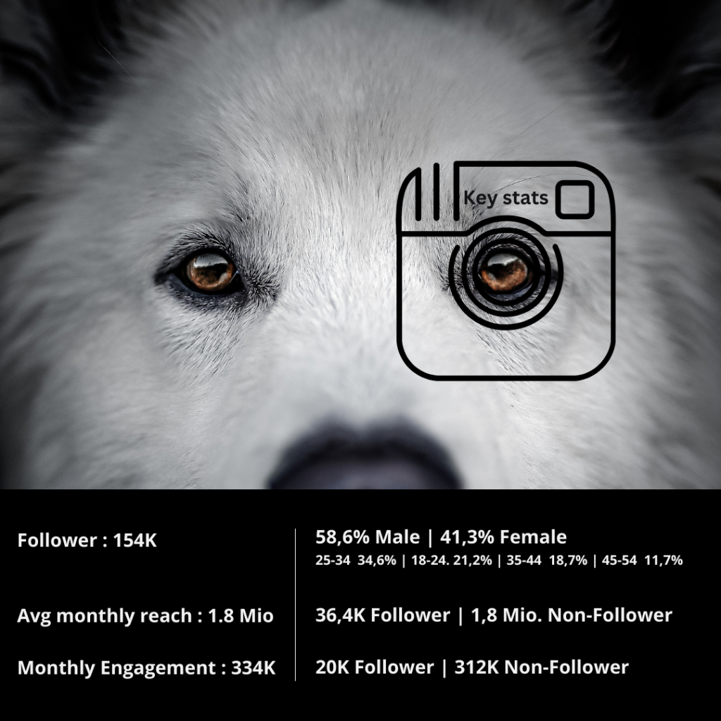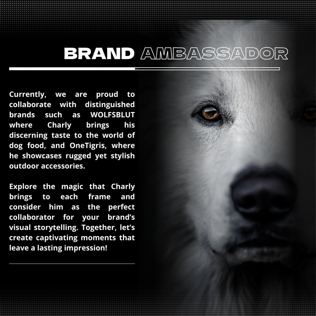 Charly, our charismatic white German Shepherd, captivates over 165,000 loyal followers on Instagram every day. With his unique charm and authentic content, Charly has secured a special place in the hearts of his community – making him the perfect ambassador for your brand!
